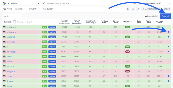 This tool shows all the keywords that have Daily Impressions and for which your application appears in search results.