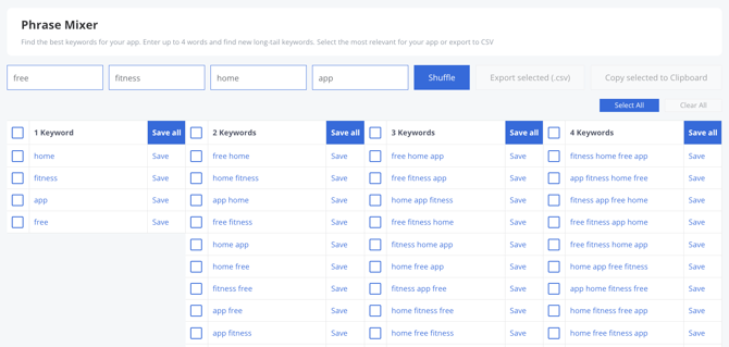 To access Phrase Mixer, go to ASO Tools and select Keywords → Phrase Mixer from the top menu: