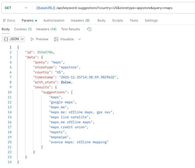https://api.asodesk.com/api/keyword-suggestions?country=US&storetype=appstore&query=maps&with_stats=true