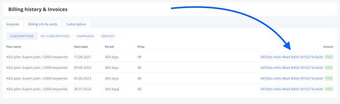 - Click on the ID of the invoice you'd like to download.