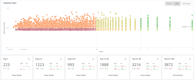 Next, you can explore the Semantic Chart, which shows how many keywords you've ranked and where they're ranked.