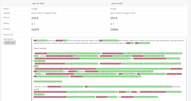You can also track metadata changes at the bottom of the page. This includes changes to the app's name, subtitle, description or versions during the selected time period.