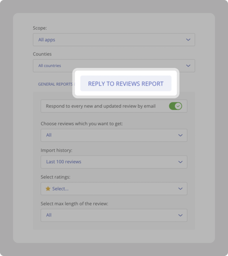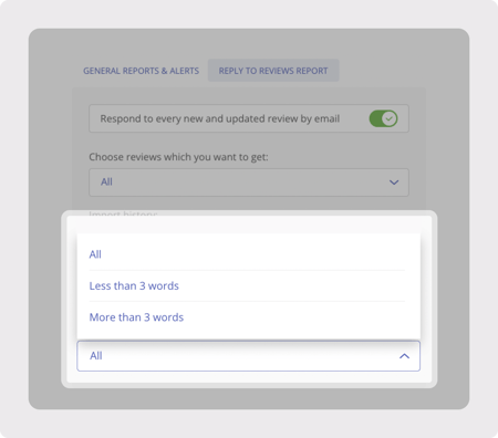 - Choose import history: specify the number of reviews you would like to receive before running the report.