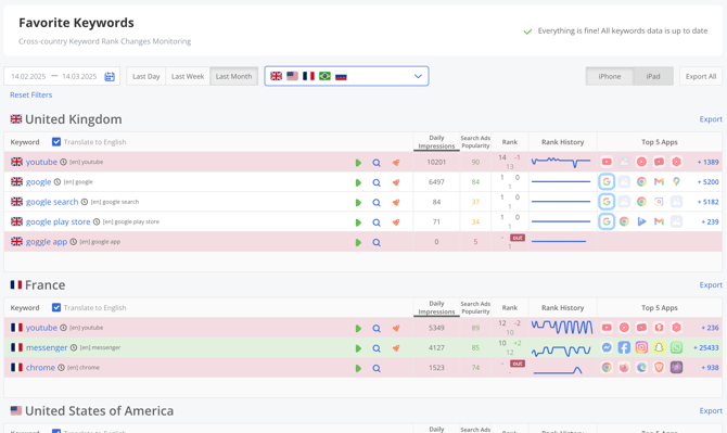 - Search Ads Populaty (for App Store only) - the popularity of a keyword, based on App Store searches.