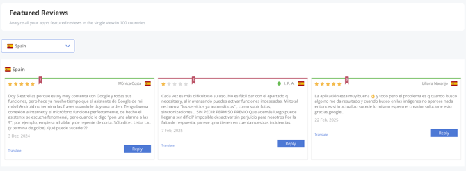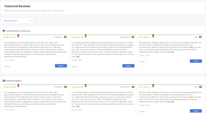 Featured reviews are shown on the app page on both the App Store and Google Play. This lets users read and check these reviews as they think about whether to download the app. We highly recommend answering these reviews.