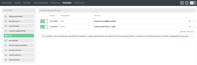 - Перейдите в раздел «Настройки» и нажмите на «API» слева;