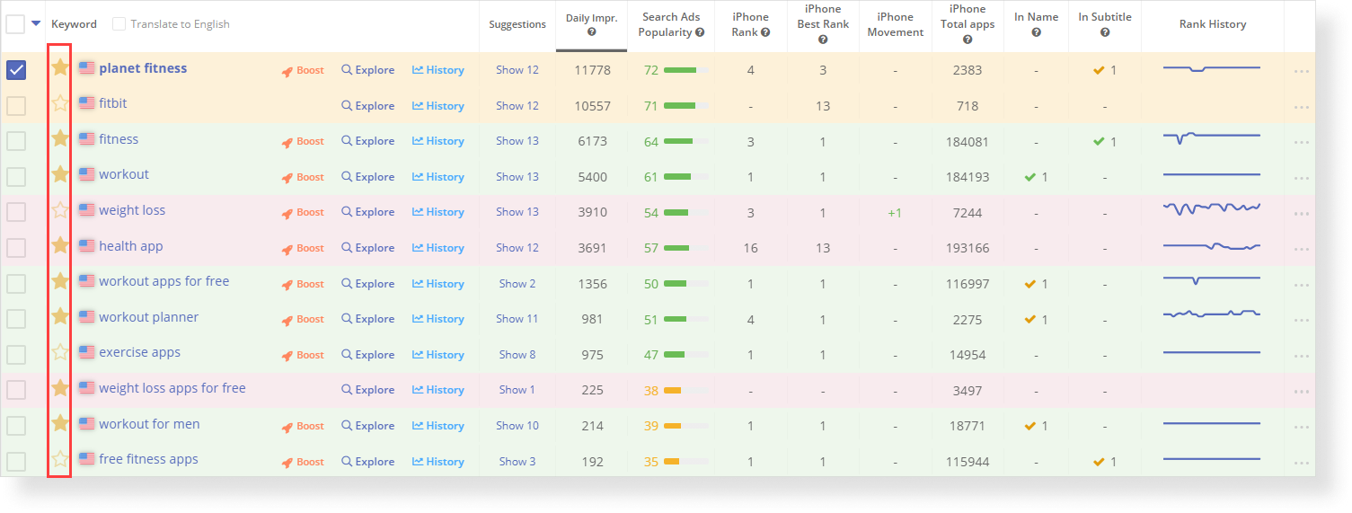 Чтобы попасть в инструмент Favorite Keywords, перейдите в ASO Tools и выберите в верхнем меню Analytics → Favorite Keywords: