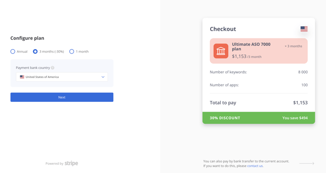 - Перейдите на страницу с ценами. В зависимости от ваших целей и потребностей вы можете выбрать план во вкладке ASO Plans: