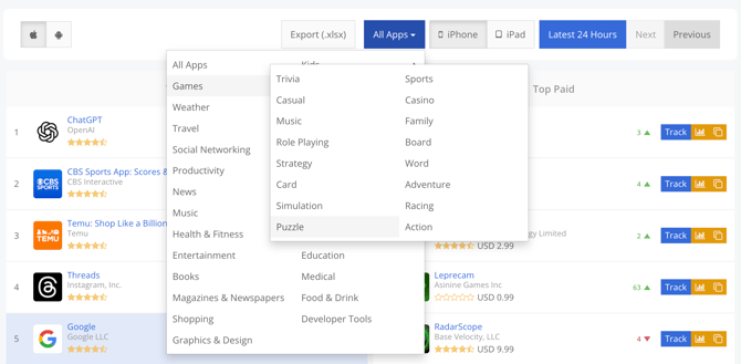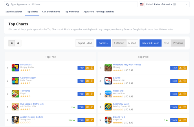 On the page, you can select a country, an app store and a specific app category to see a list of the most popular and highest-rated applications in your chosen category.